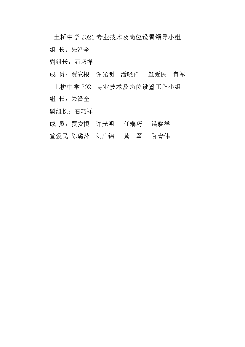 土桥中学2021年专业技术职称及岗位设置领导小组和工作小组