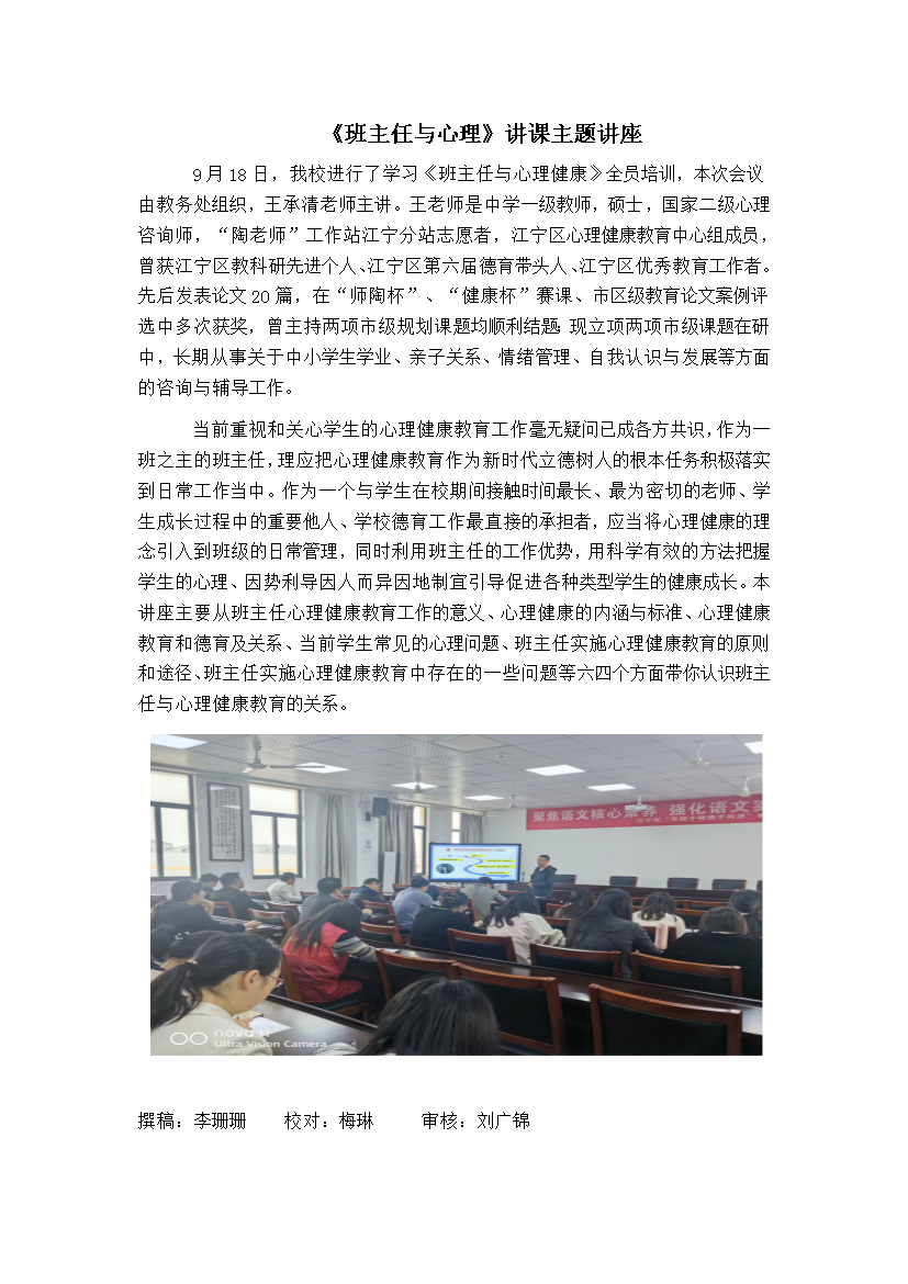 《班主任与心理健康》讲课主题讲座